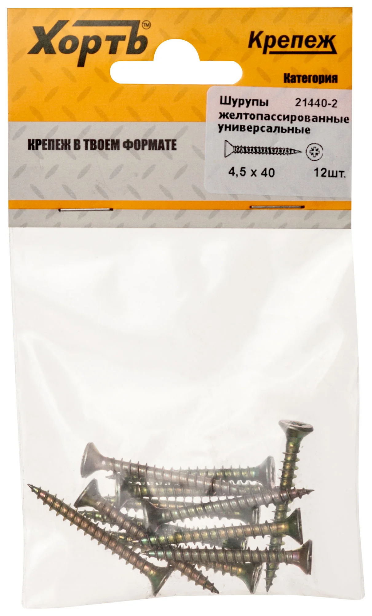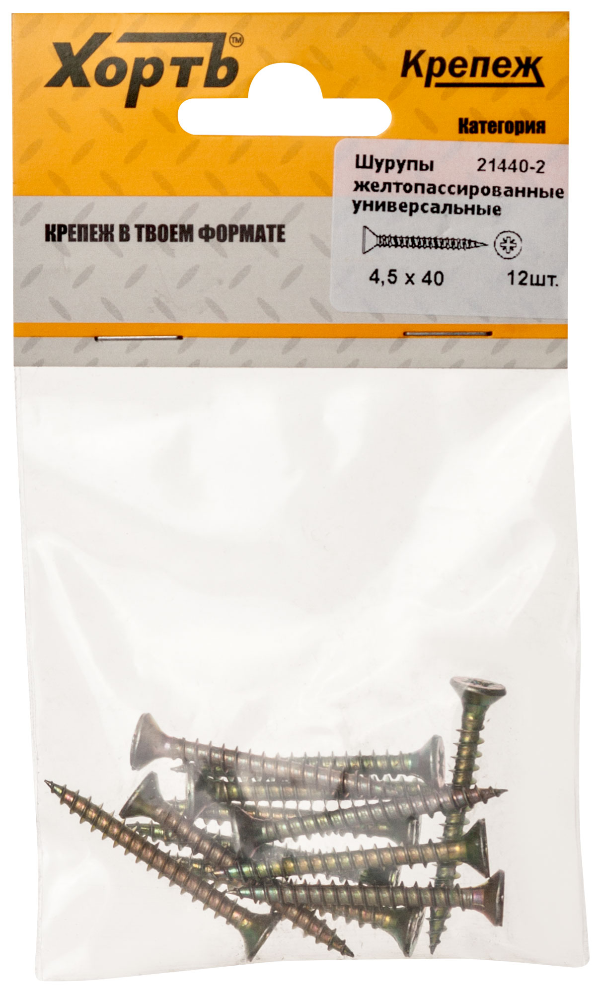 Универсальные желтопассированные шурупы 4.5 х 40 мм для крепежа