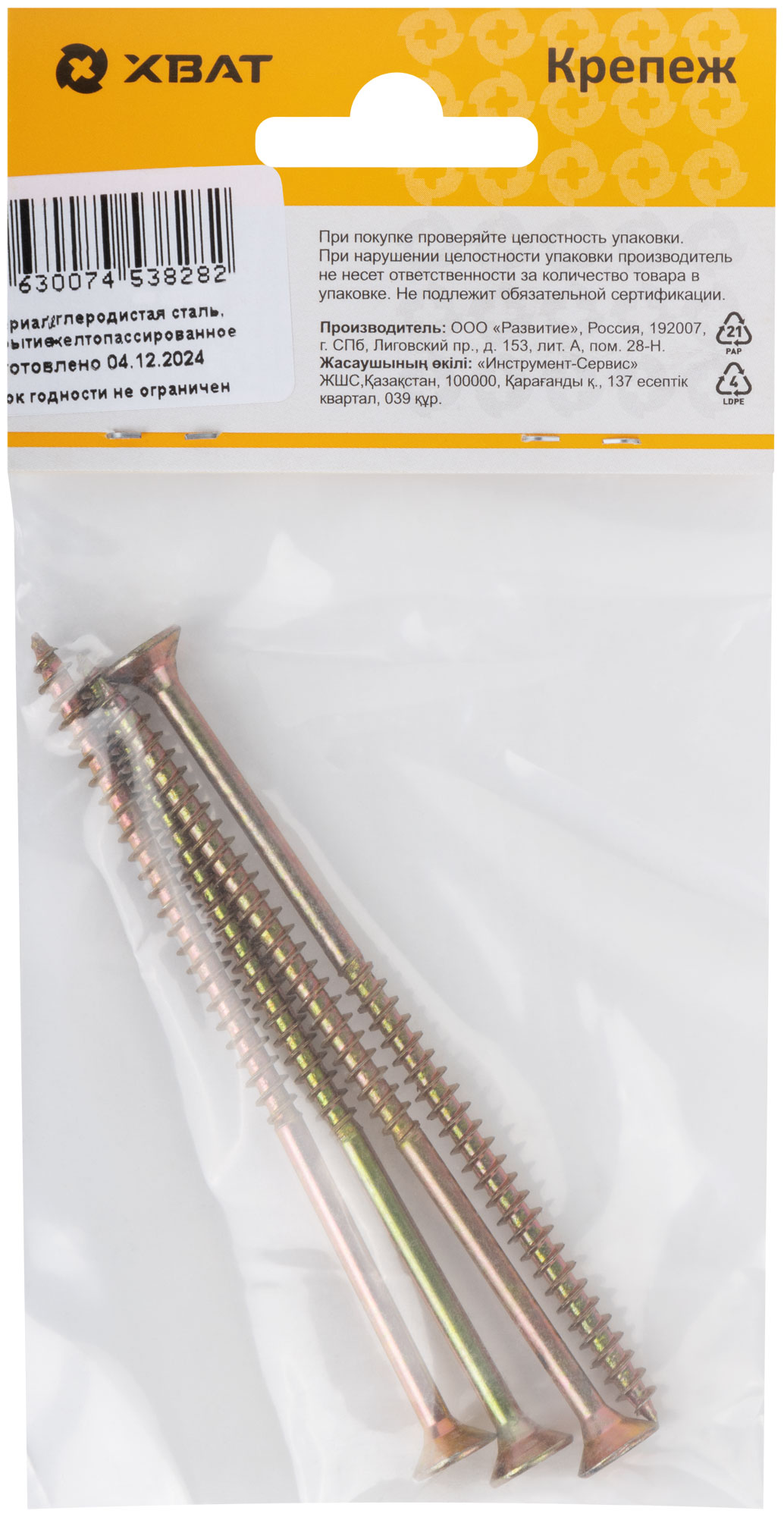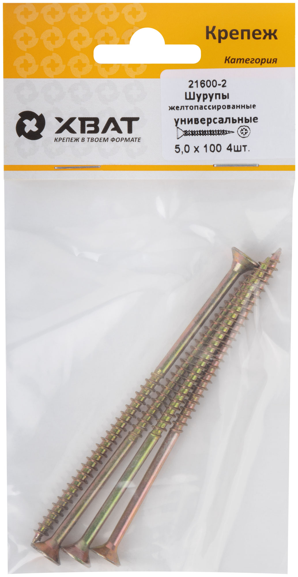 Продукция XВАТ производится в России, что гарантирует высокое качество исполнения и надежность в использовании. Шурупы фасуются по 4 штуки, что удобно для небольших работ и экономии материалов.