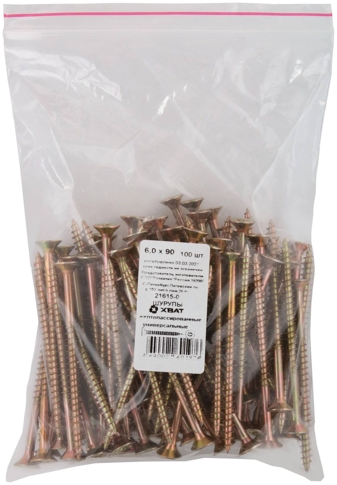 Шурупы желтопассированные 6 х 90 мм для универсального крепления