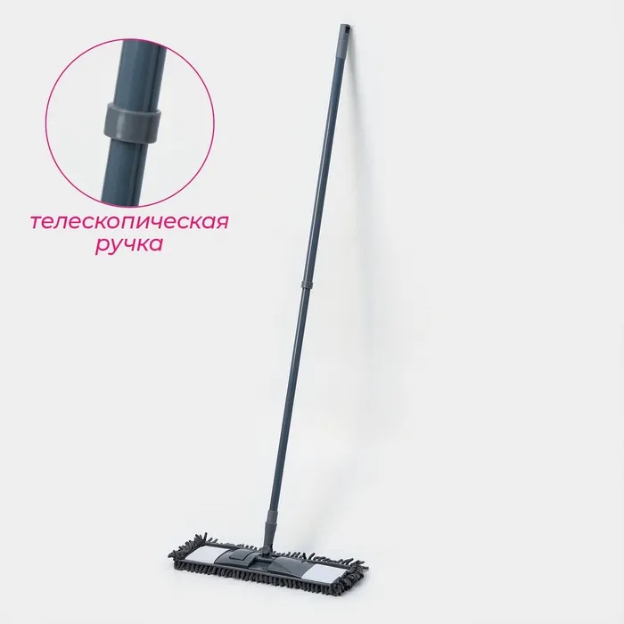 Швабра для мытья пола плоская Доляна, насадка микрофибра букли 42×12 см, телескопическая ручка 70 (120) см — Характеристики