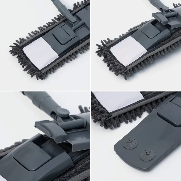 - Телескопическая ручка: Регулируется от 70 до 120 см, позволяя настроить швабру под любой рост и обеспечить комфорт во время уборки.