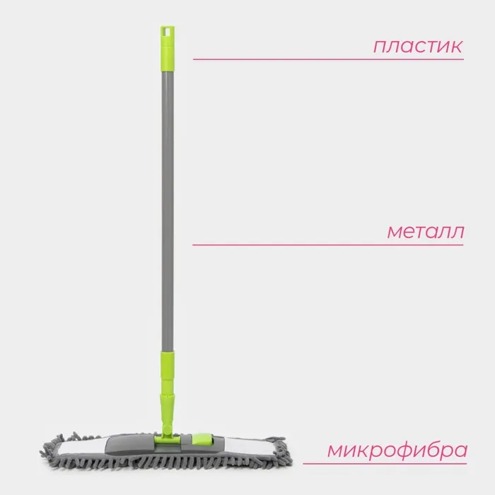 Швабра для мытья пола плоская Доляна, окрашенный телескопический черенок, микрофибра букля, 42×12×73(124) см — Характеристики