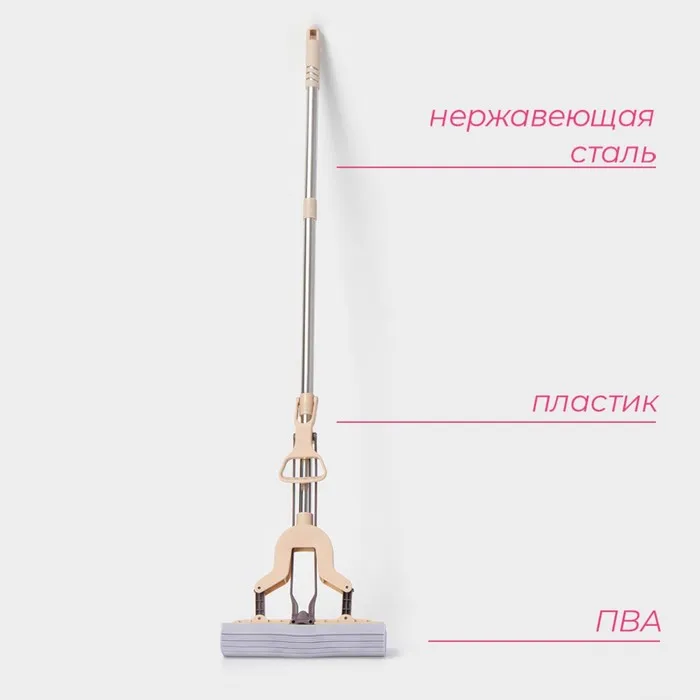 Швабра для мытья пола PVA Доляна, со складным отжимом, насадка 27×6 см, стальная составная ручка 116 см — Характеристики