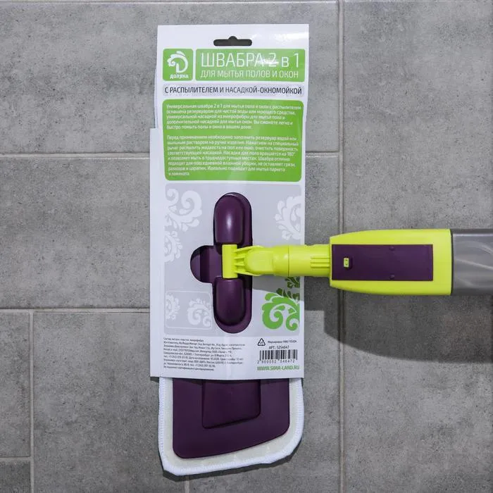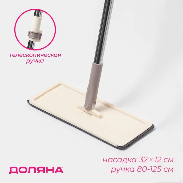 Швабра для мытья пола с распылителем Доляна, насадка из микрофибры 38×10 см, дополнительная насадка для мойки стёкол, ручка 120 см — Характеристики