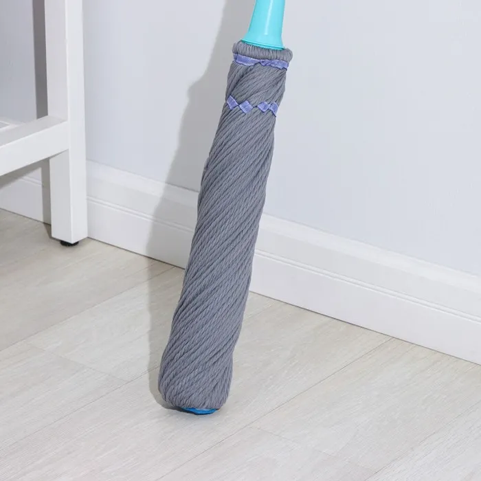 Эффективный отжим обеспечивается благодаря специальному механизму: насадка фиксируется на пластиковом кольце, а микрофибра скручивается и отжимается. Потяните её вверх и вращайте против часовой стрелки. Однако не следует чрезмерно туго закручивать насадку, достаточно 3–5 оборотов. В противном случае вы рискуете повредить конструкцию! Приятный бонус — руки остаются чистыми и сухими.