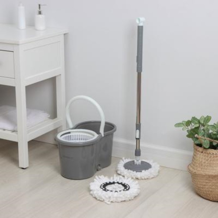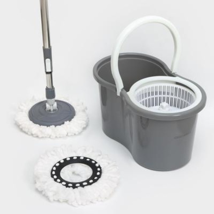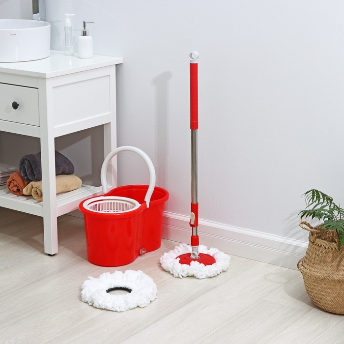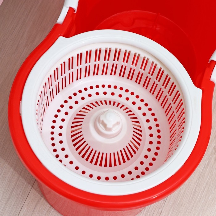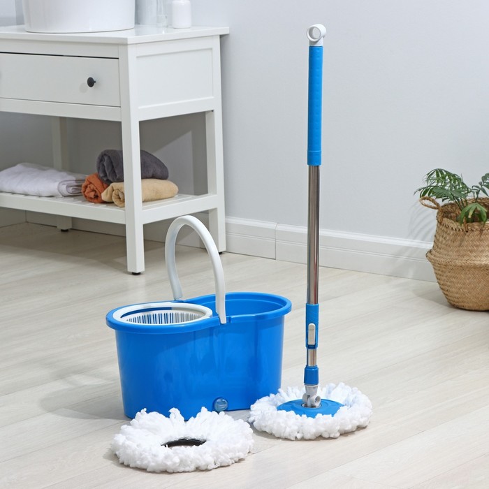 Швабра с отжимом и ведром на колёсиках с пластиковой центрифугой Доляна, 14 л, швабра, запасная насадка из микрофибры, цвет МИКС — Характеристики