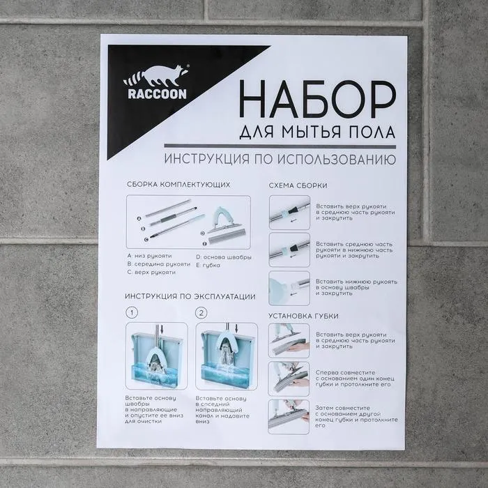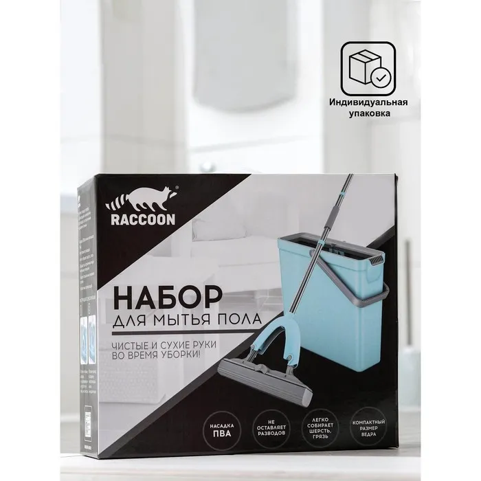 Швабра с отжимом и ведром Raccoon, швабра ПВА, ведро для полоскания 11 л — Характеристики