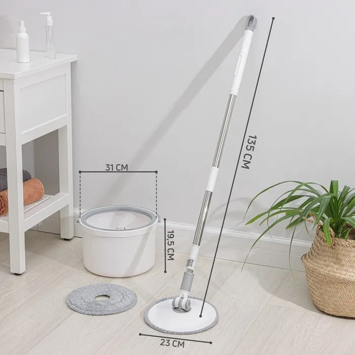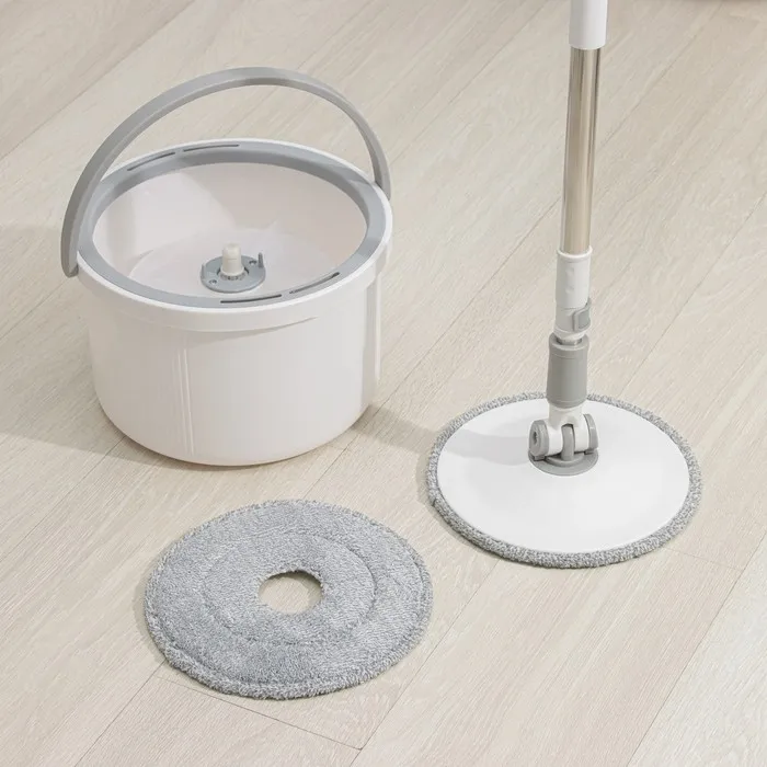 Подвижная часть ручки швабры легко опускается и обеспечивает вращение насадки. Вы без труда можете контролировать уровень влажности моющей части за счет количества вращений.