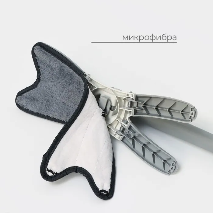 Швабра оснащена насадкой из микрофибры размером 36Г—14 см, которая отлично справляется с уборкой любых поверхностей, включая паркет, ламинат и плитку. Микрофибра не только тщательно очищает, но и эффективно собирает мелкий мусор, такой как волосы и шерсть домашних животных.