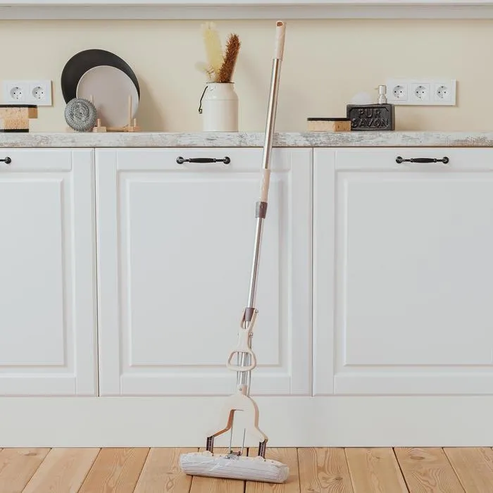 Поддержание чистоты в доме — важная задача. Швабра со складным ожимом и телескопической ручкой значительно облегчит уборку. Вы сможете менять насадки по мере необходимости. Отжим работает следующим образом: потяните на себя рычаг и удалите лишнюю влагу, благодаря этому простому действию ваши руки останутся сухими.