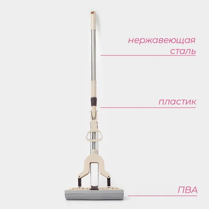 Швабра со складным отжимом PVA Доляна, насадка 27×6 см, стальная составная телескопическая ручка 100(125) см — Характеристики