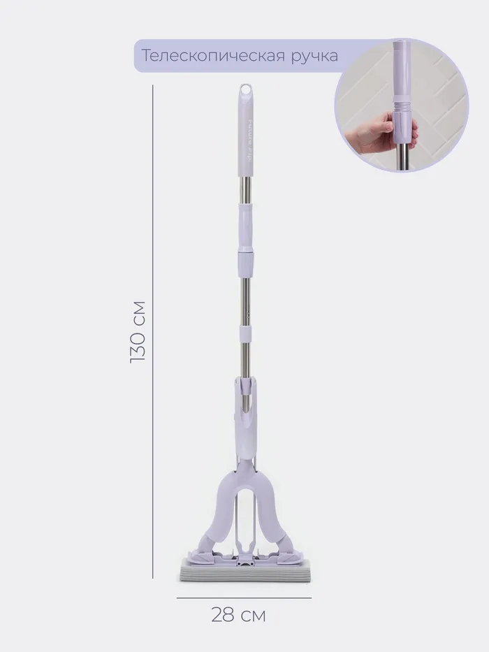 Складная швабра Future Alp с отжимом и насадкой из PVA — это удобный инструмент для быстрой и эффективной уборки. Её телескопическая ручка регулируется под рост пользователя, а складной механизм отжима упрощает процесс удаления лишней воды. Насадка из эластичного PVA обеспечивает бережное мытьё поверхностей без разводов и царапин.