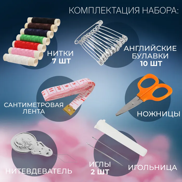 Швейный набор, 21 предмет, в блистере, МИКС