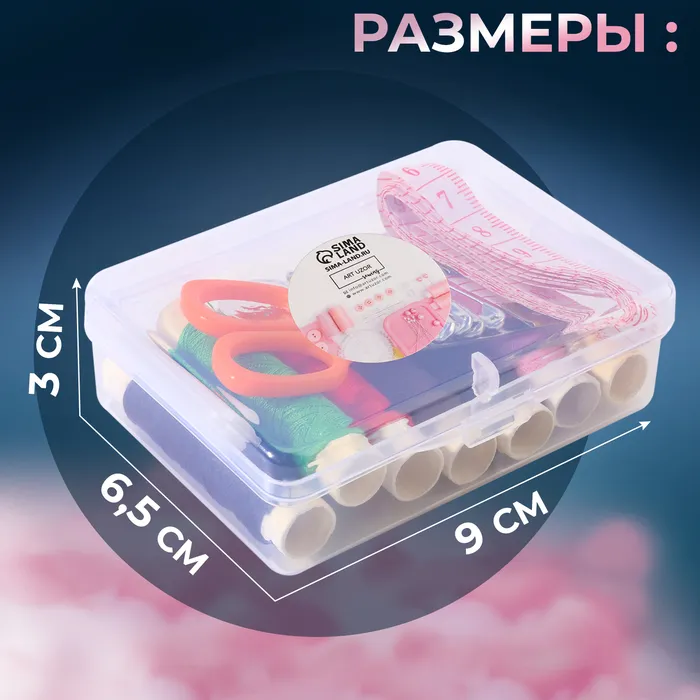 Швейный набор, 23 предмета, в пластиковом контейнере, 9×6×3 см — Характеристики