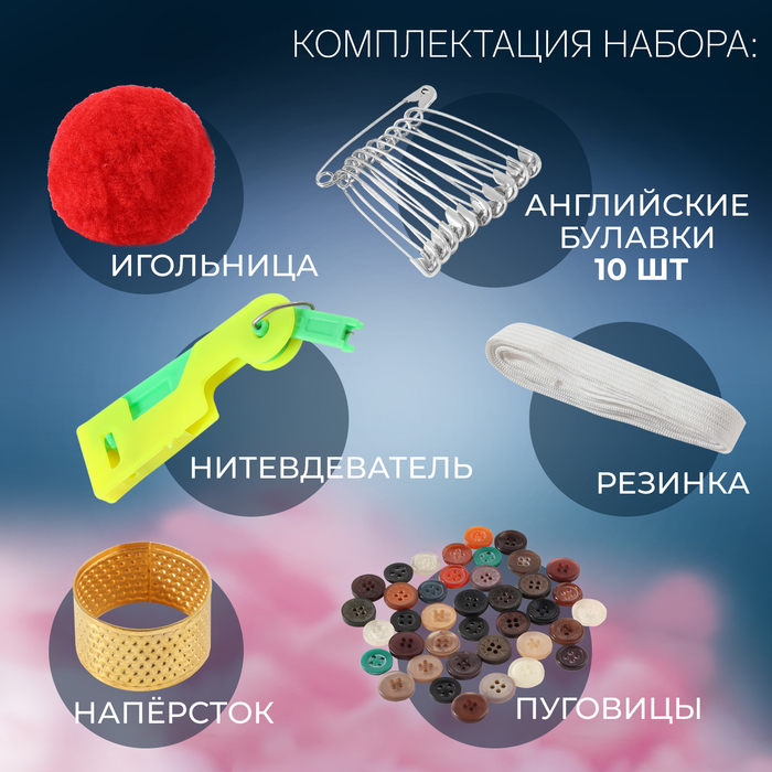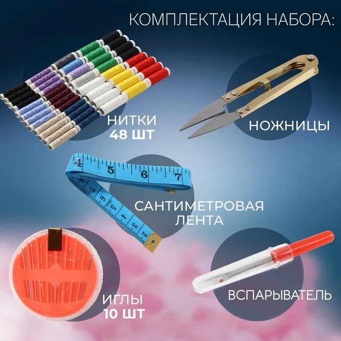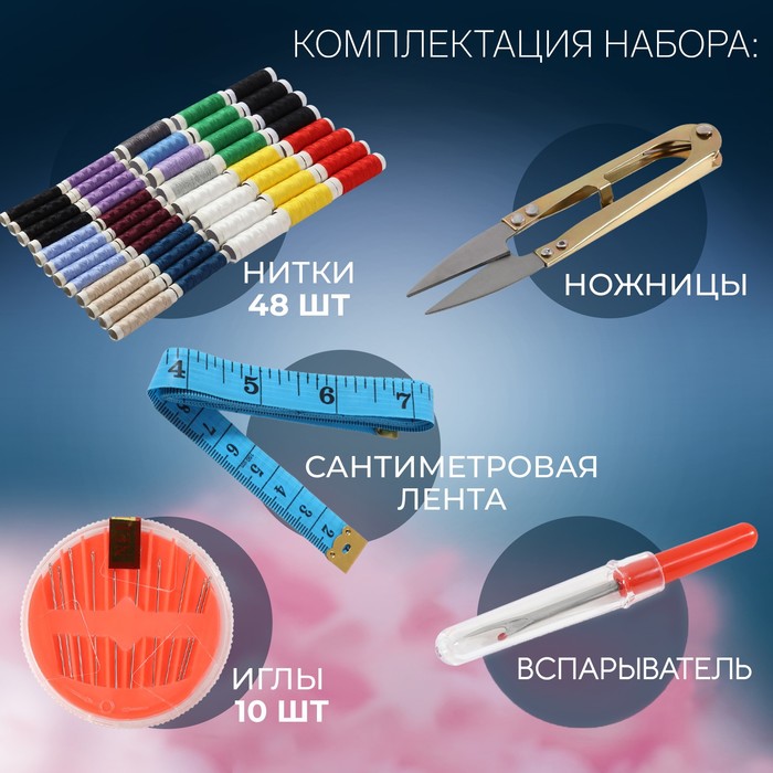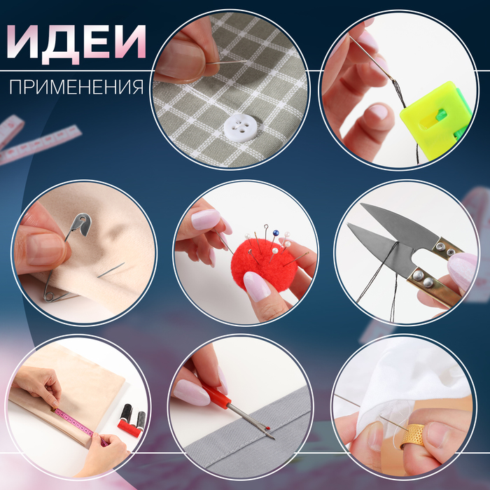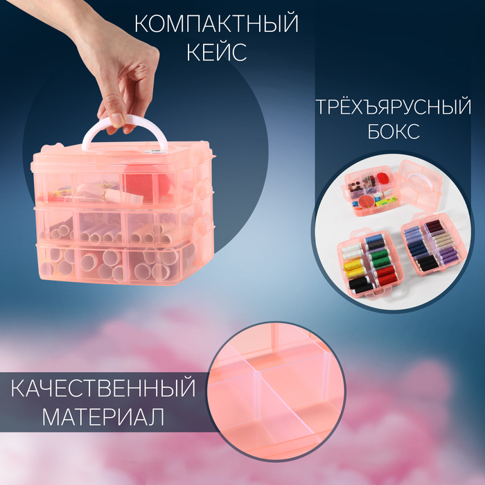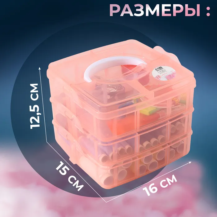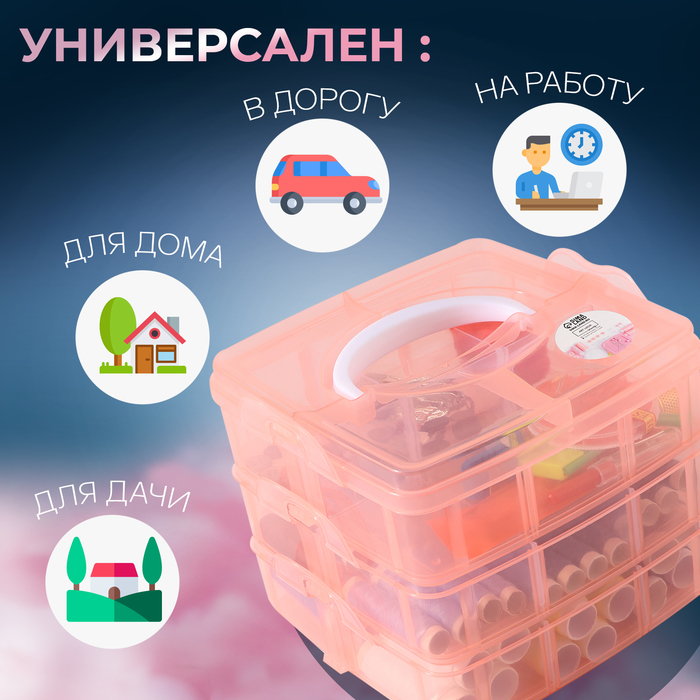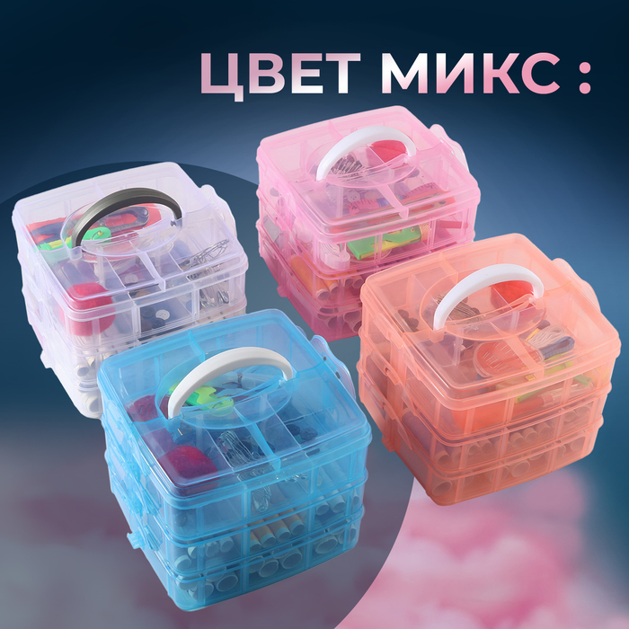 Швейный набор, 76 предметов, в трёхъярусном боксе, 16 × 15 × 12,5 см, цвет МИКС — Характеристики
