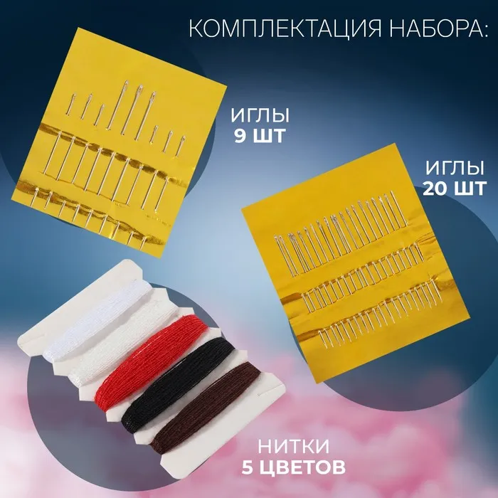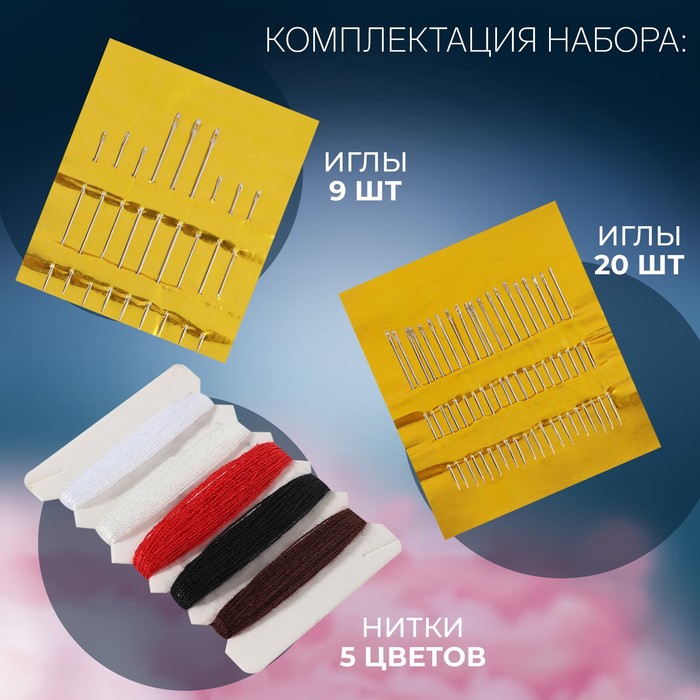 Портновский набор: булавки 40 шт., иглы 16 шт., в блистере, МИКС