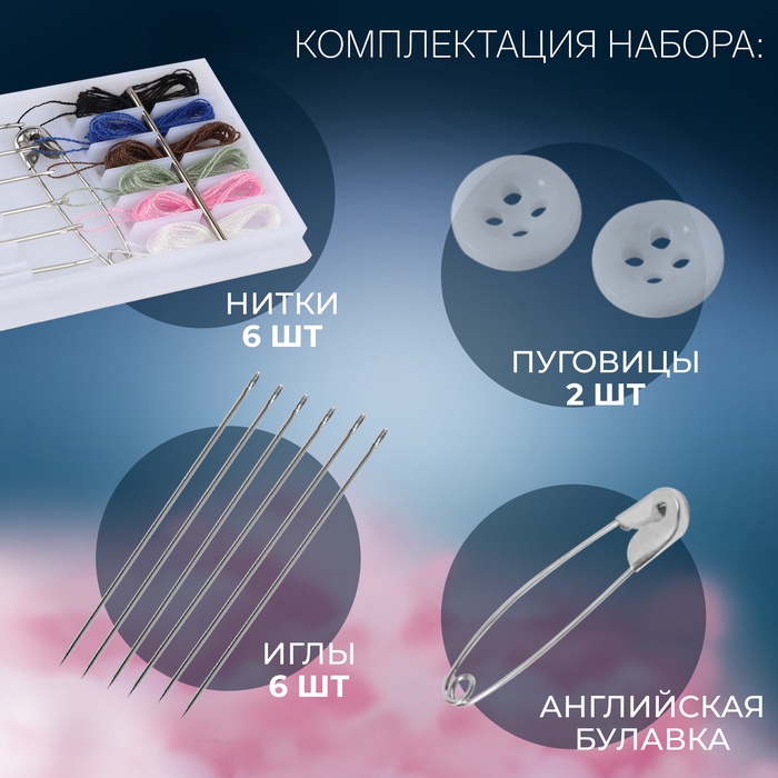 Швейный набор дорожный, 15 предметов, в пластиковом футляре, 7.5×3.5 см — Характеристики