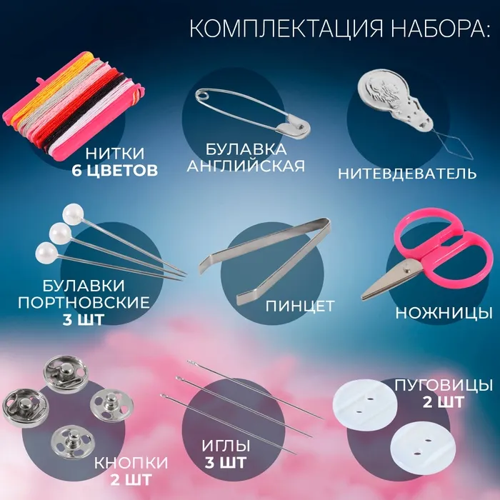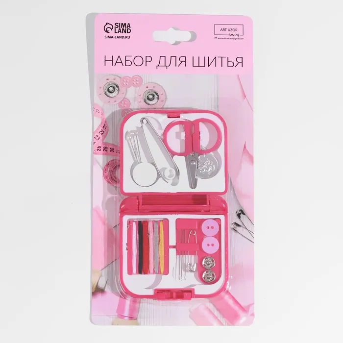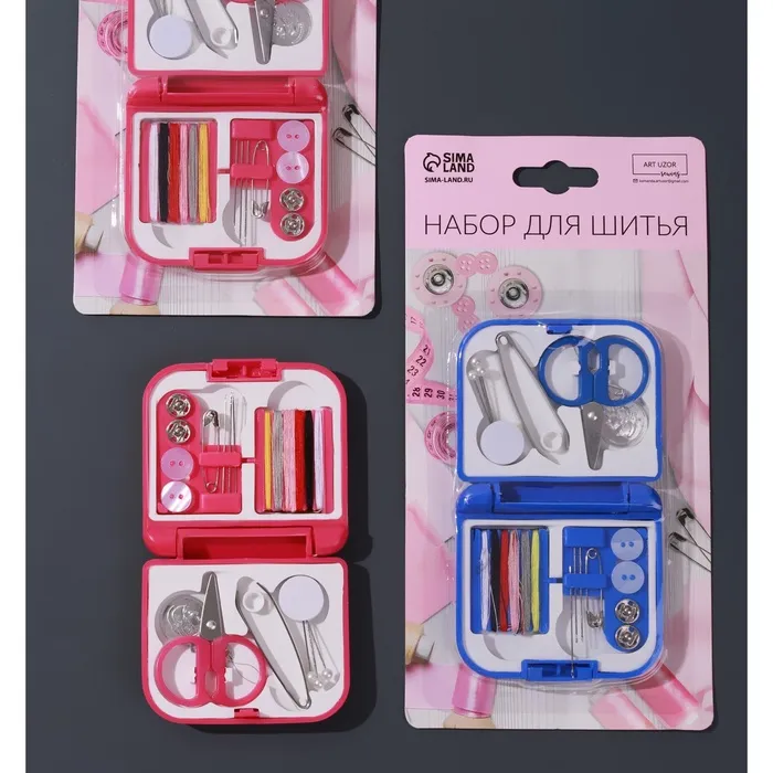Швейный набор, 22 предмета, в блистере, 20 × 10,5 см, цвет МИКС