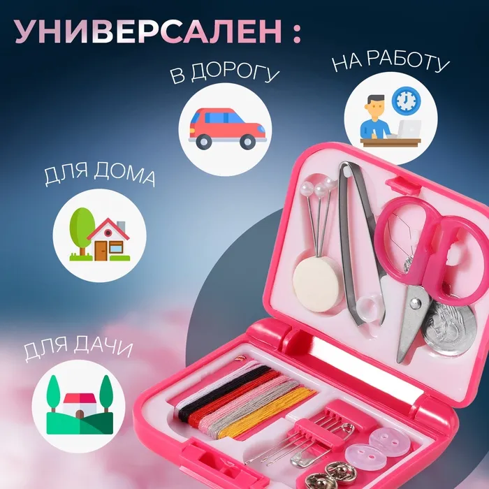 Швейный набор дорожный, 20 предметов, в складной пластиковой коробке, 7×6.5×2 см, МИКС