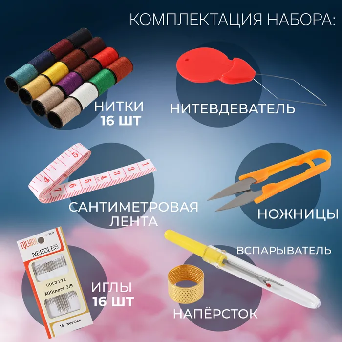 Швейный набор, 25 предметов, в чехле ПВХ, МИКС