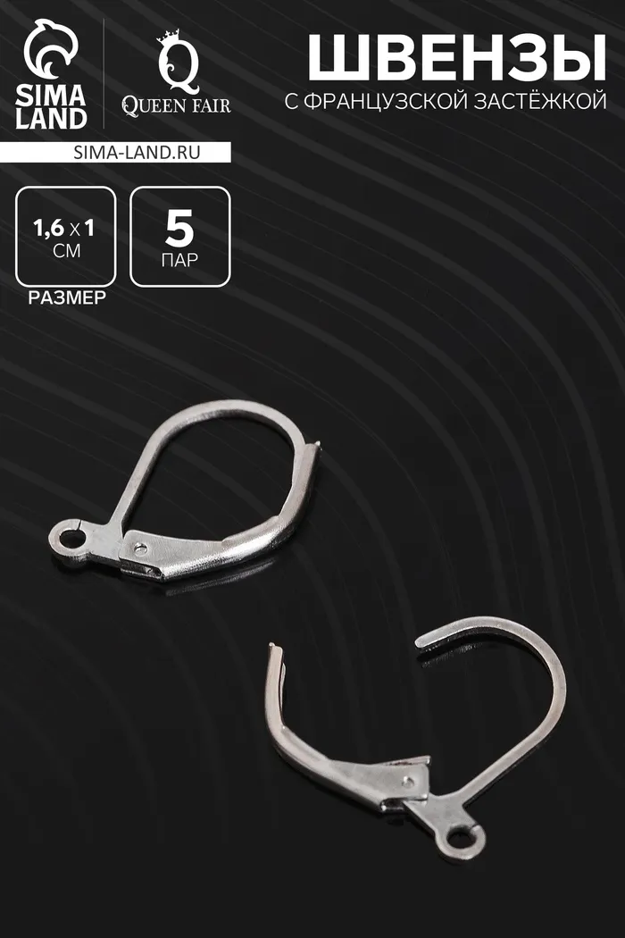 Швензы для сережек с французской застёжкой, 16 мм (набор 5 пар), цвет серебро — Характеристики