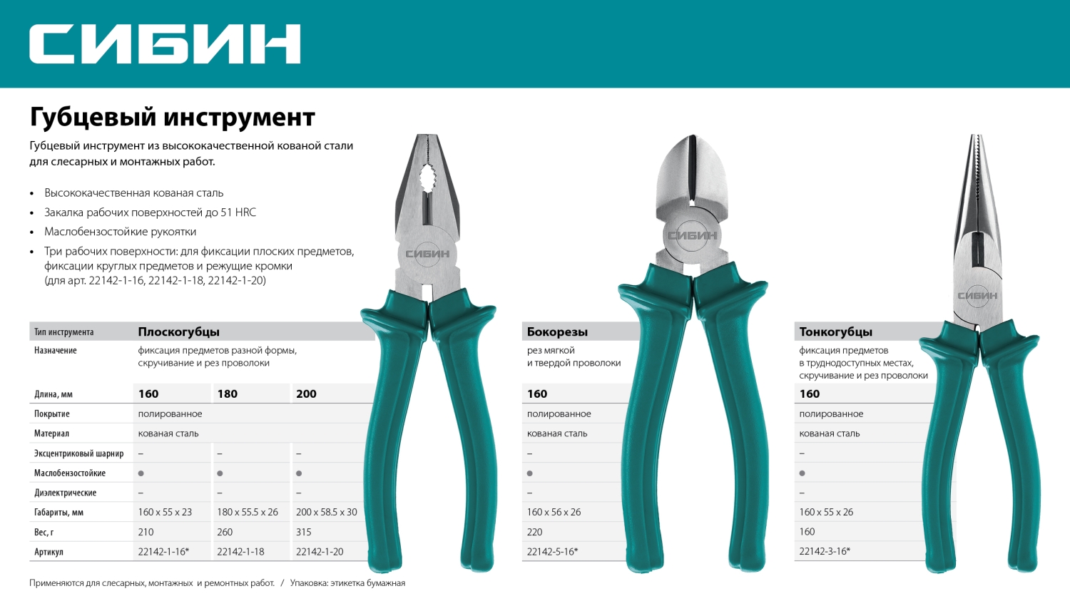 Губцевый инструмент изготовлен из высококачественной кованой стали и предназначен для слесарных и монтажных работ