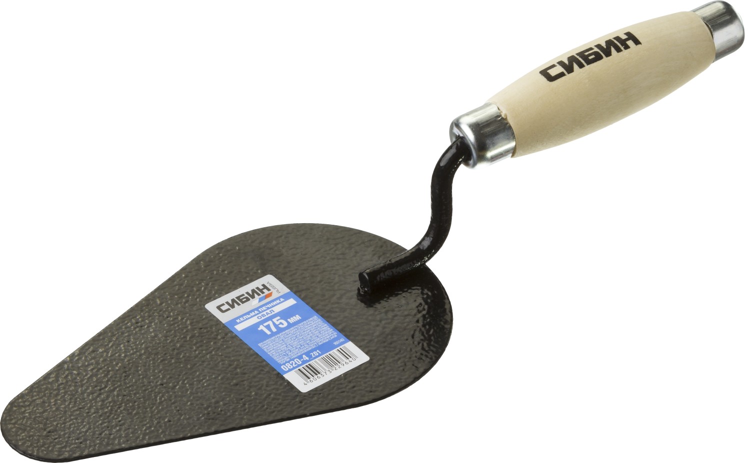 кельма используется для нанесения строительных растворов, стальное полотно обеспечивает прочность конструкции, а деревянная ручка удобство в работе
