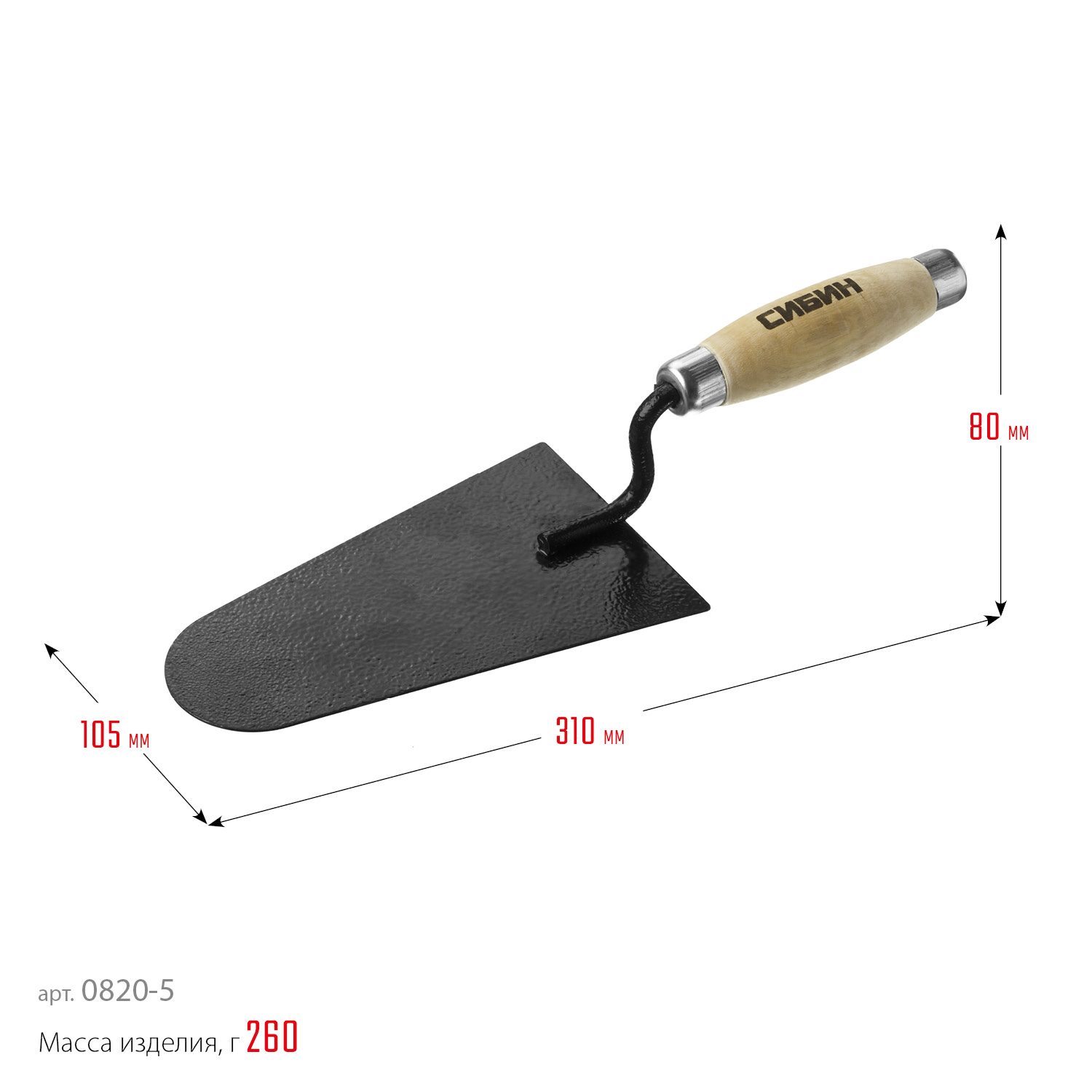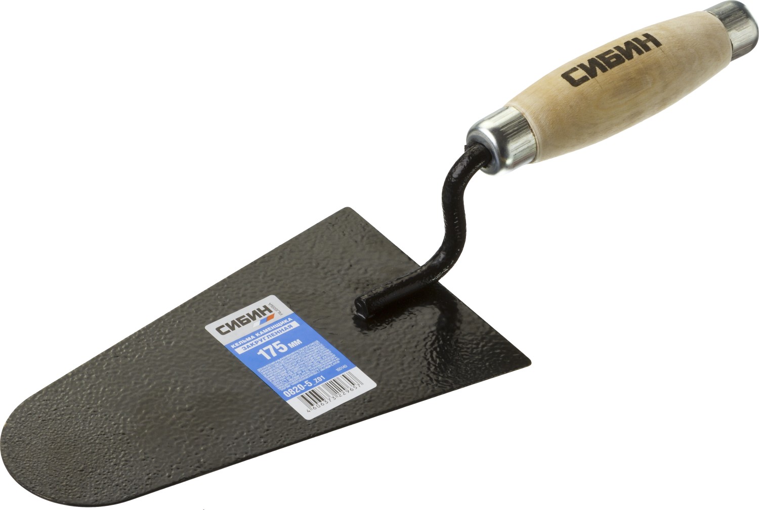 кельма используется для нанесения строительных растворов, стальное полотно обеспечивает прочность конструкции, а деревянная ручка удобство в работе