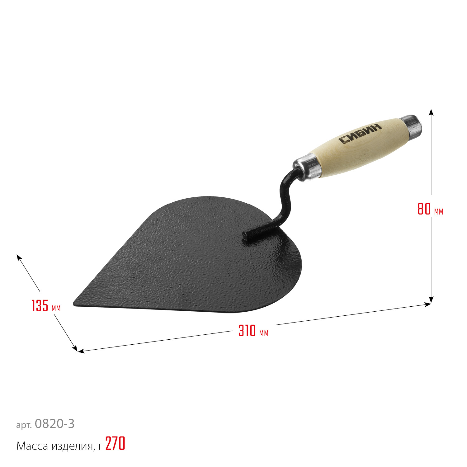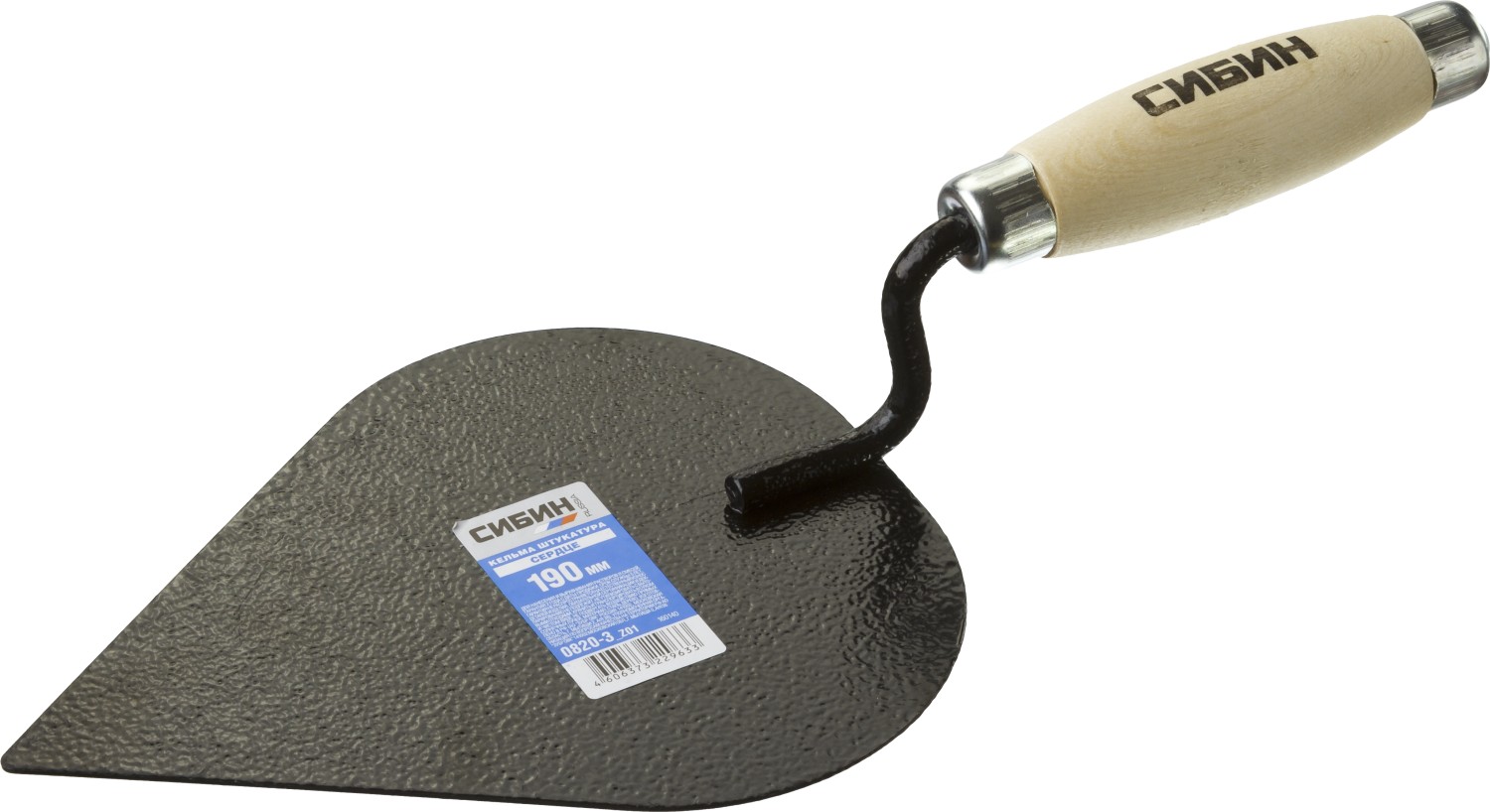 кельма используется для нанесения строительных растворов, стальное полотно обеспечивает прочность конструкции, а деревянная ручка удобство в работе