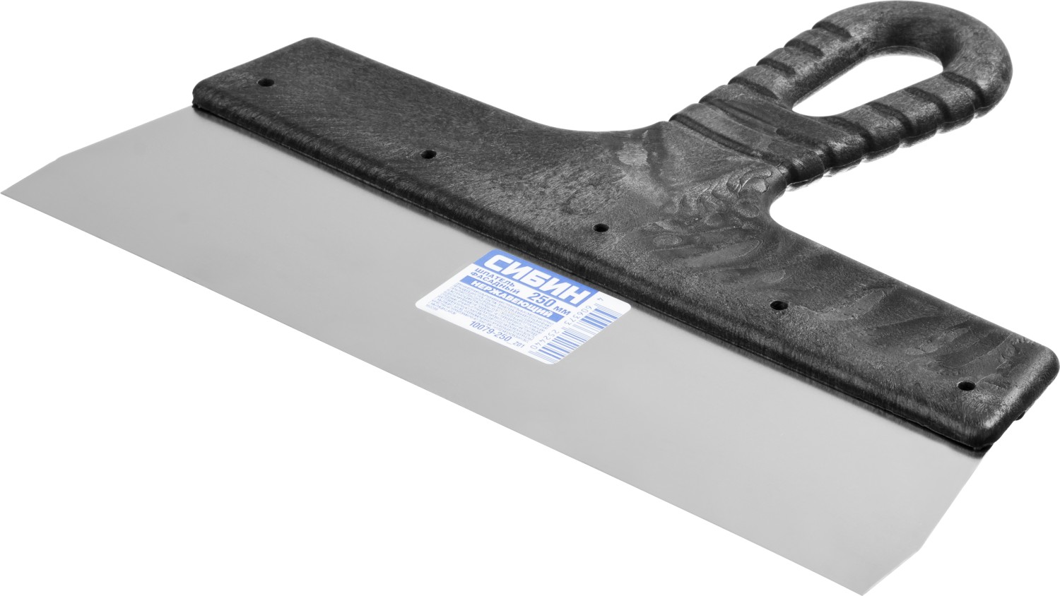 Шпатель СИБИН - отличный выбор для строительства и ремонта! Полотно из нержавеющей стали обеспечивает надежность и долгий срок службы инструмента, а удобная пластмассовая рукоятка создает условия для комфортной работы. Незаменимый инструмент при проведении работ на больших поверхностях.