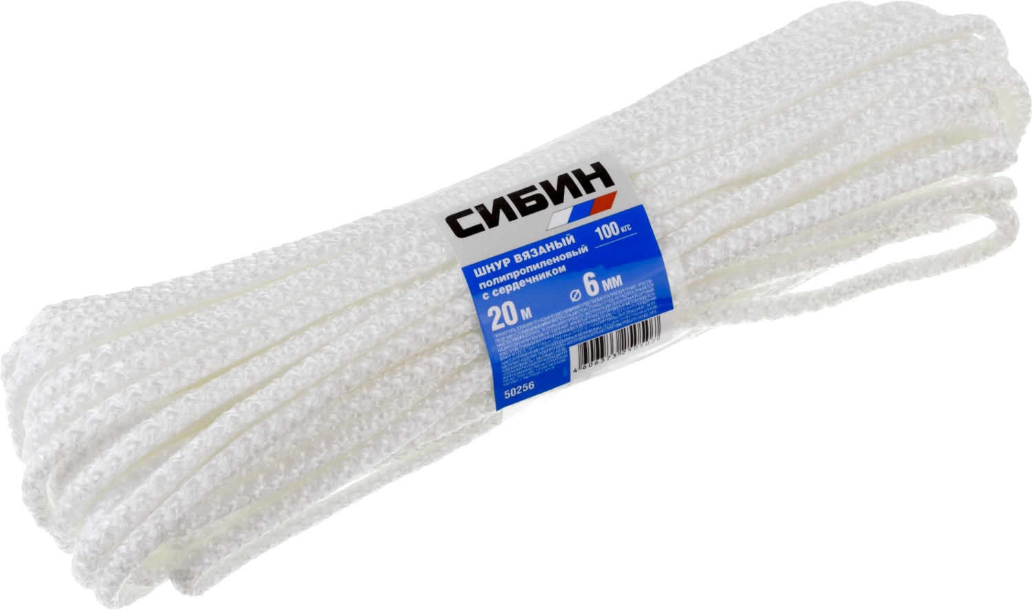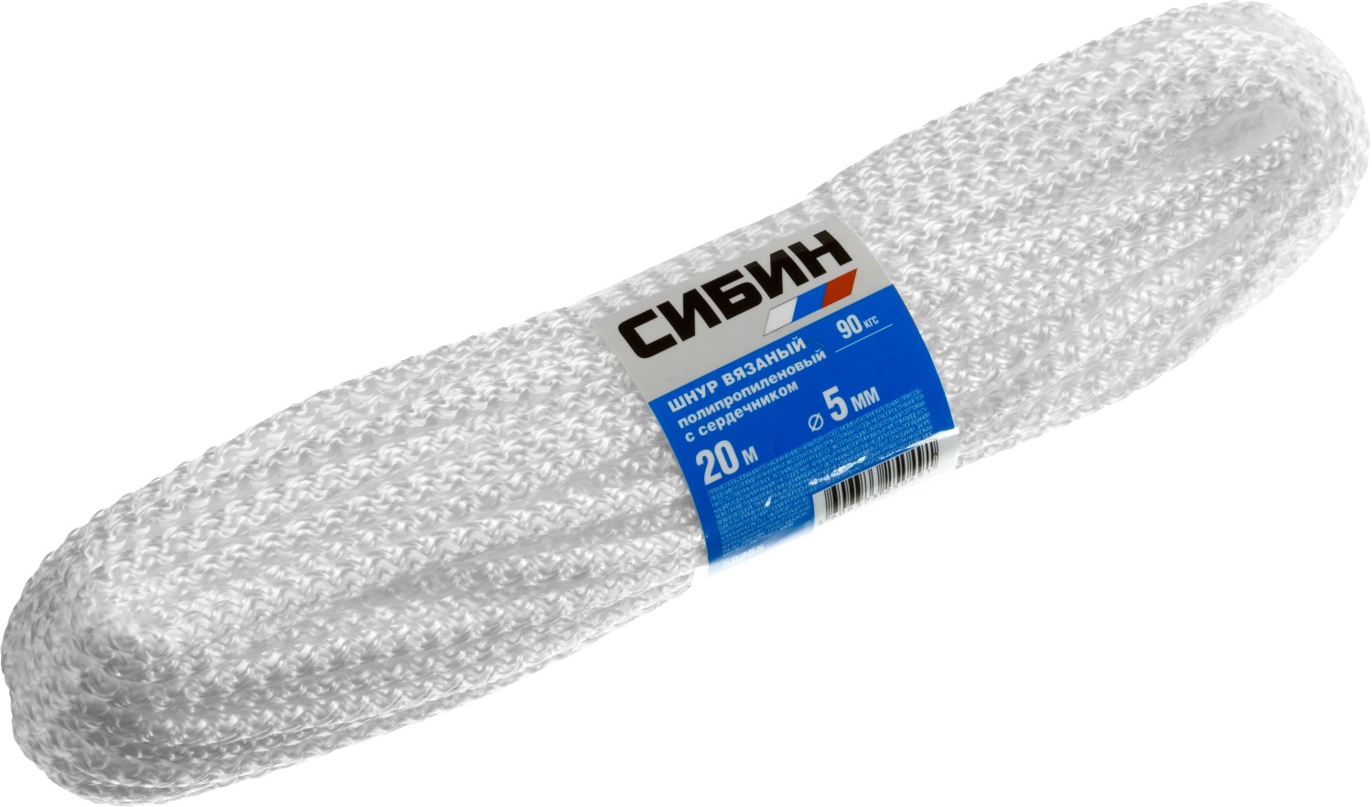 СИБИН 7 мм, 20 м, вязаный, с сердечником, белый, полипропиленовый шнур (50257)