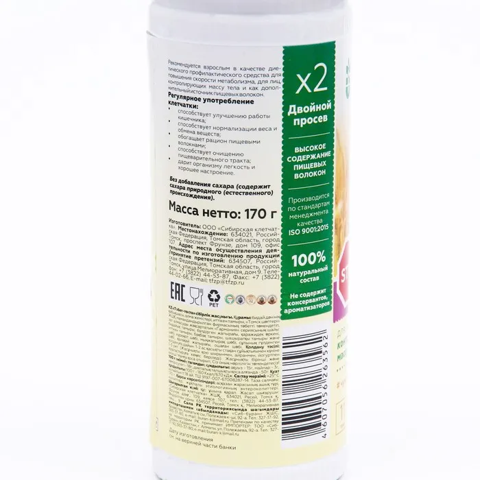 Способ применения: клетчатка готова к употреблению, не требует заваривания: 2 ст. ложки клетчатки на 250 мл воды комнатной температуры или кефира/йогурта/других густых жидкостей. Настоять 1 минуту. Выпивать за 10-15 минут до еды 1-3 раза в день.