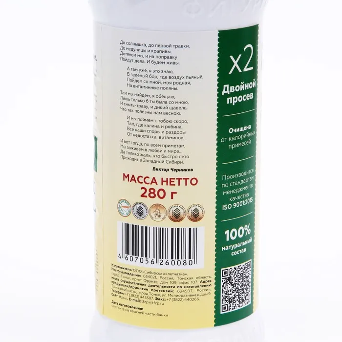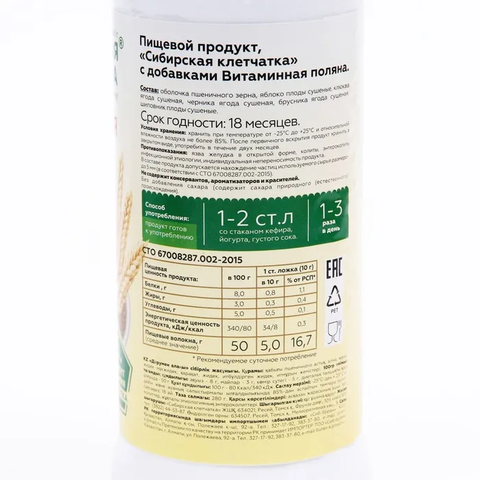 Сочетание целебных свойств клетчатки и сибирских дикоросов благотворно влияет на обмен веществ и сопротивляемость болезням.