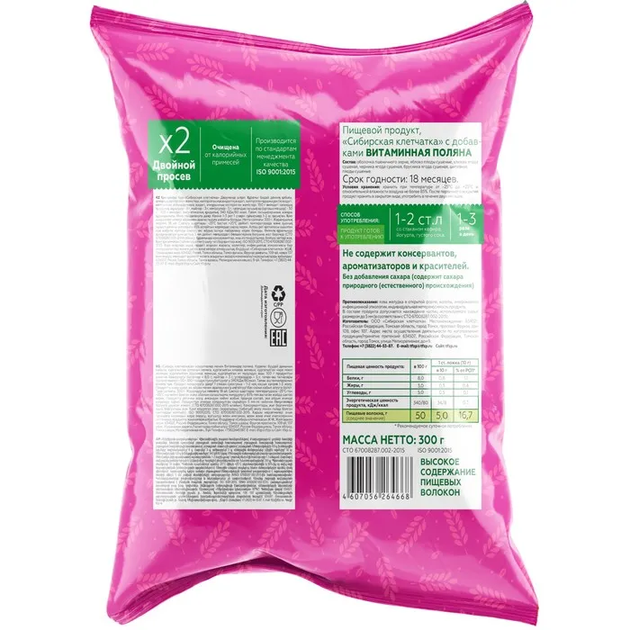 Способ употребления: продукт готов к употреблению! 1-2 ст.л. на 1 стакан жидкости (кефир, йогурт, густой сок), 1-3 раза в день. Не требует запаривания. Подходят для ежедневного приема пакетика в день до еды или вместо перекуса.