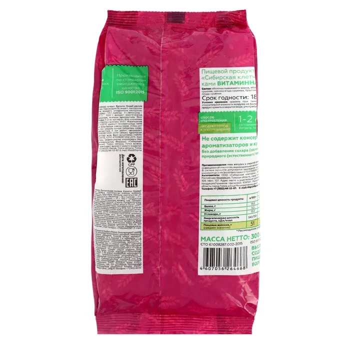 Состав: оболочка пшеничного зерна, яблоко плоды, клюква ягода, черника ягода, брусника ягода, шиповник плоды.