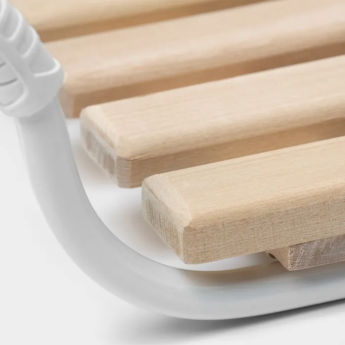 Металлический каркас обеспечивает надежную фиксацию и удивительную прочность изделия (модель способна выдерживать вес до 100 кг), а теплое дерево сделает процесс купания более приятным.