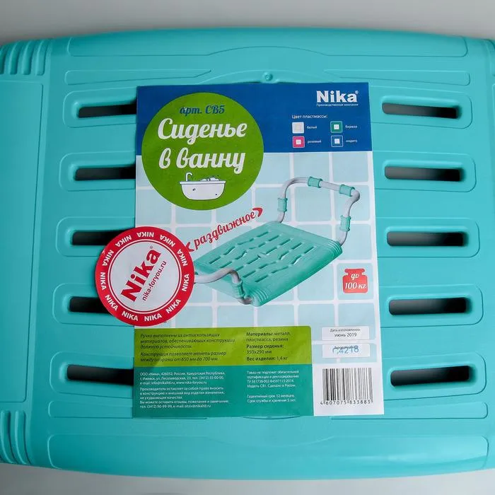 Сиденье для ванны раздвижное, 35×29 см, цвет бирюза — Характеристики