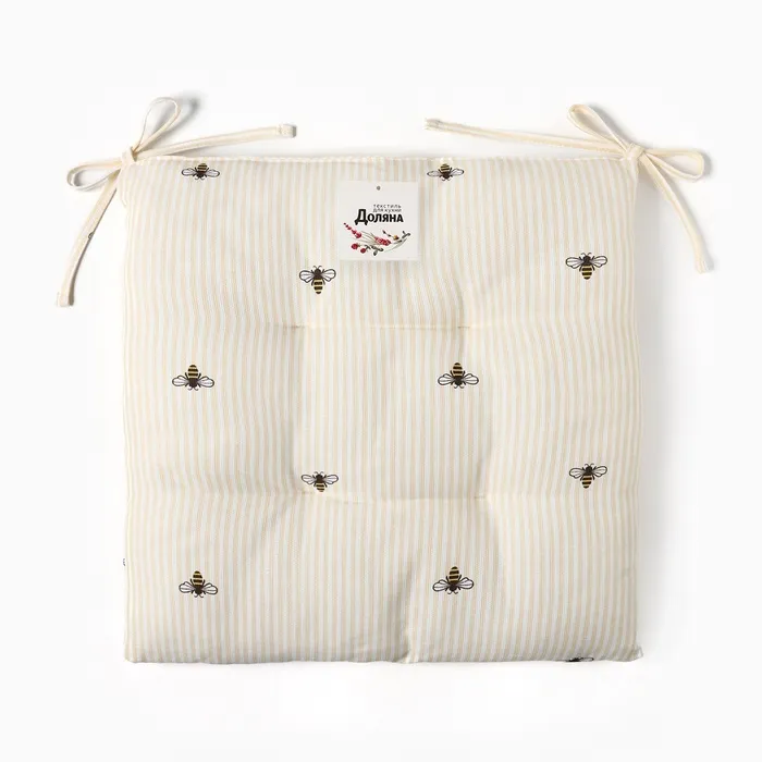 Сидушка на стул Доляна «Пчёлки», 42×42×7 см, рогожка 164 г/м², 100% хлопок — Характеристики