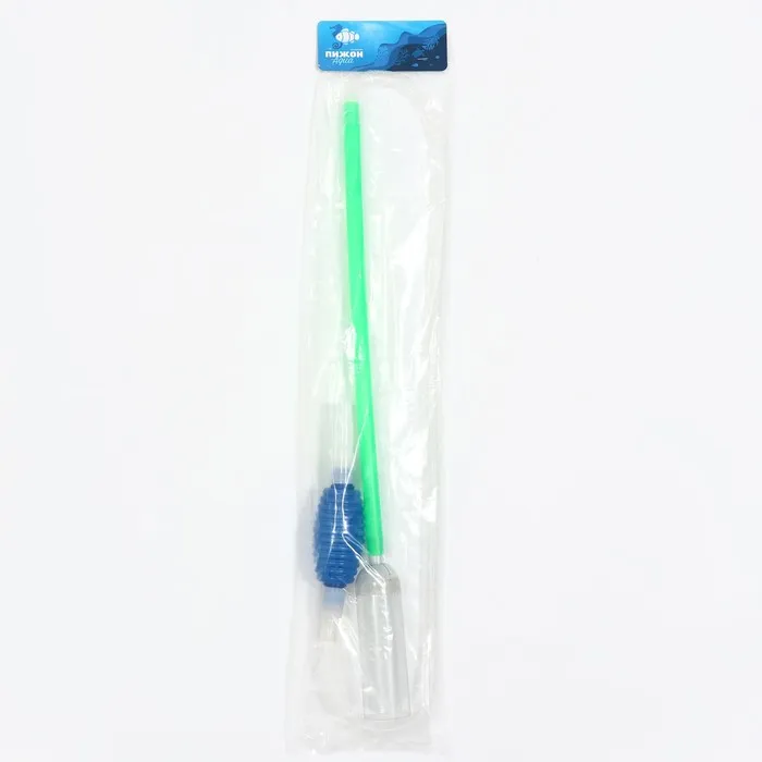 Аквариумный сифон удобен для ручного использования и обладает большой силой всасывания. Выполнен из пластика. У входного отверстия имеется сито внутри, которое собирает остатки корма и мусор с грунта. Чистит грунт и воду одновременно.