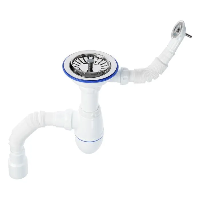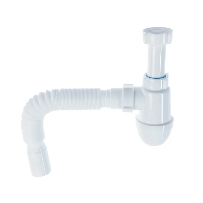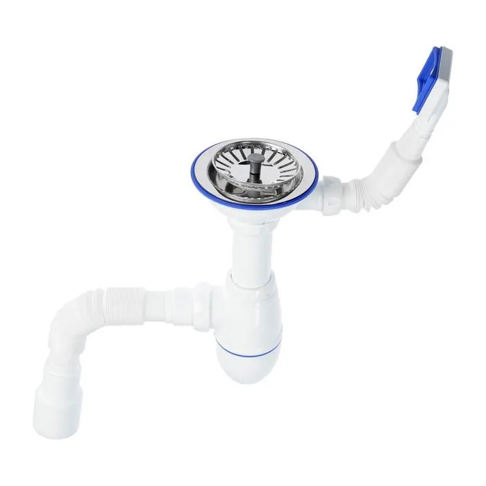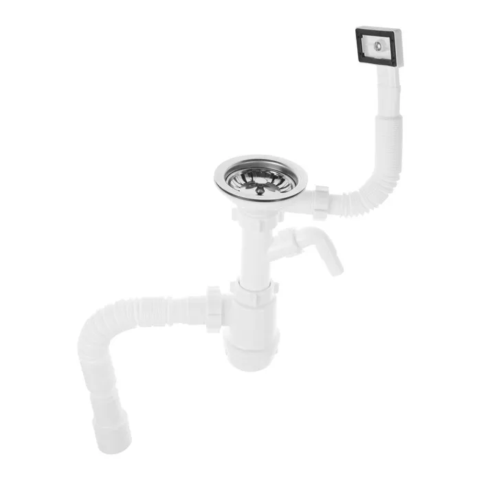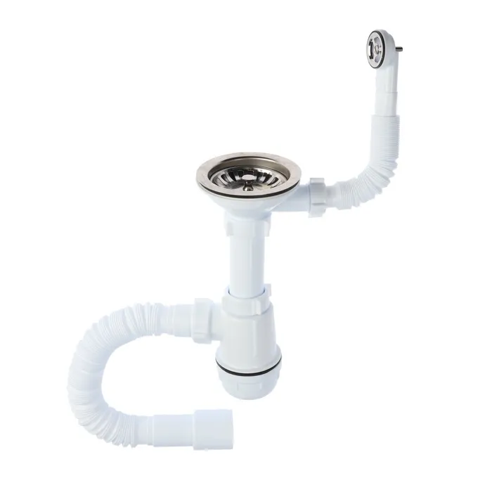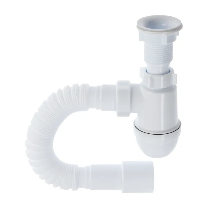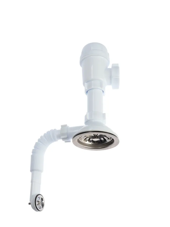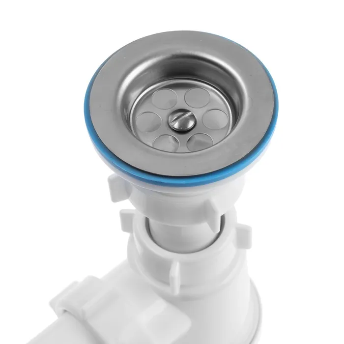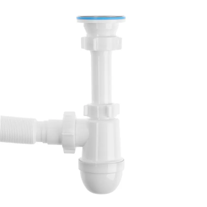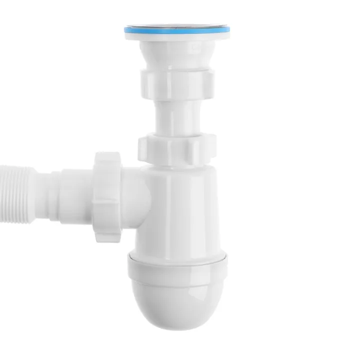 Сифон бутылочного типа предназначен для кухонной мойки с диаметром сливного отверстия 50 мм.