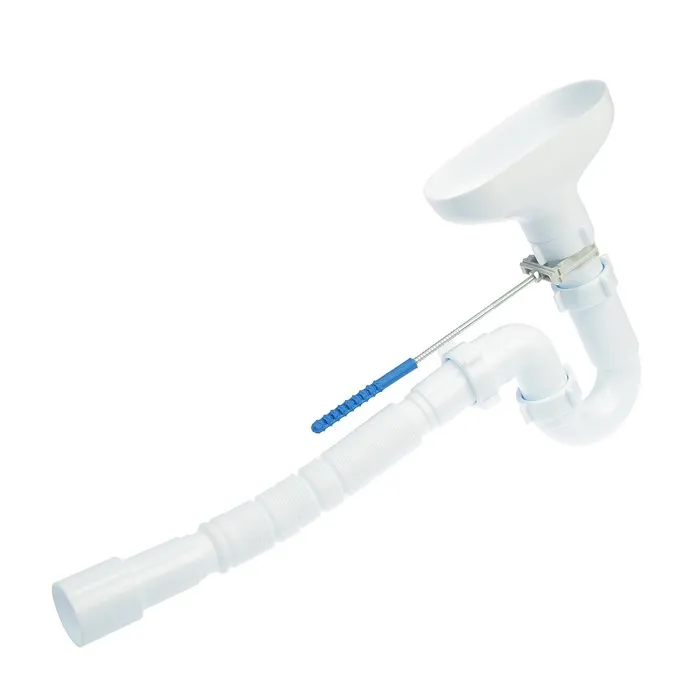 Для подключения к канализации комплектуется гибкой трубой размером 40 × 40/50 мм. В комплекте с сифоном есть разборный выпуск и нержавеющая решётка.