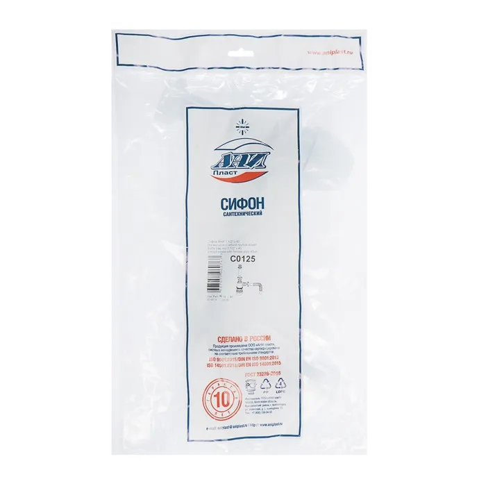 Сифон для мойки «АНИ Пласт» С0125, 1 1/2"х40 мм, без выпуска, с гофрой 40×40 мм — Характеристики