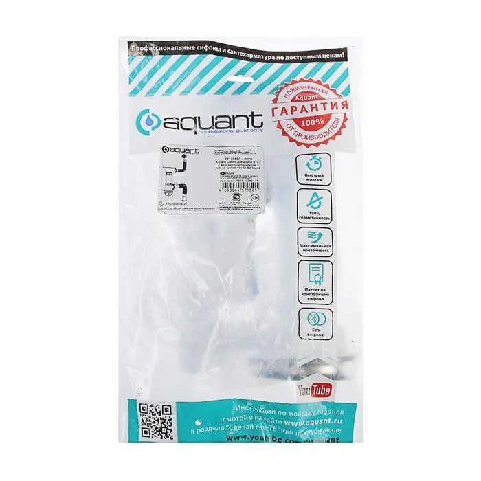 Сифон для мойки Aquant, 3 1/2" х 40 мм, круглый перелив, с гофрой 40×40/50 мм — Характеристики