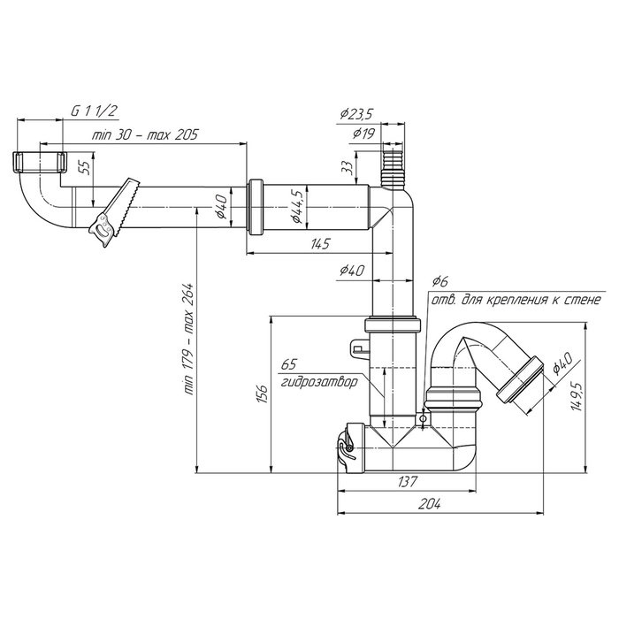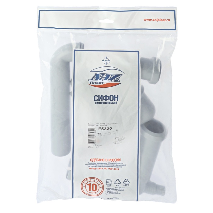Сифон для раковины "АНИ Пласт" F5320, 1 1/4" х 40 мм, без выпуска, смещенный, отвод — Характеристики