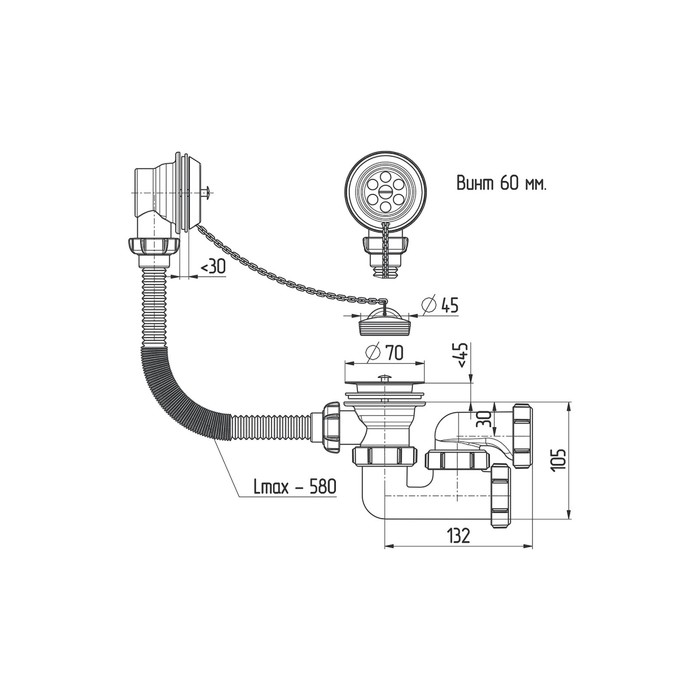 Сифон для ванны Akvater, 1 1/2"х40 мм, регулируемый, с гофрой 40х40/50 мм — Характеристики
