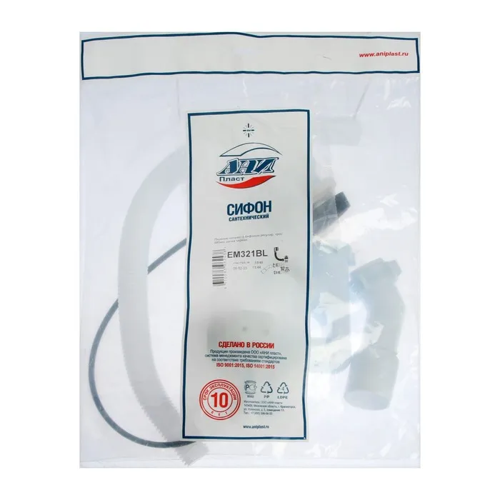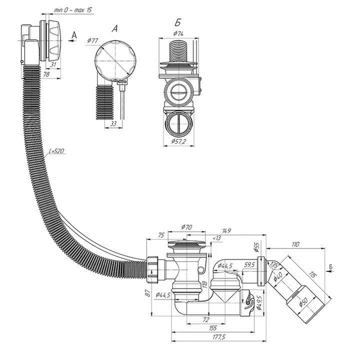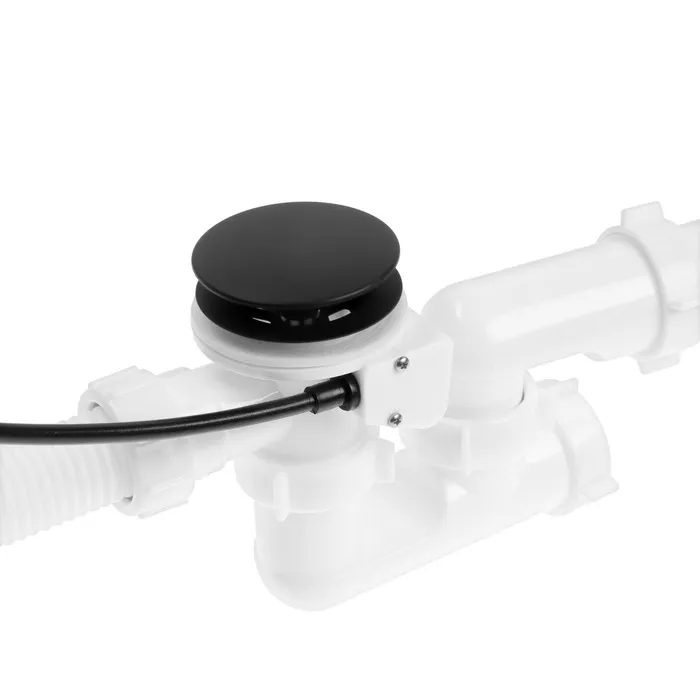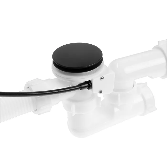 Сифон для ванны «АНИ Пласт» EM321BL, 520 мм, регулируемый, полуавтомат, ручка металл, черный — Характеристики