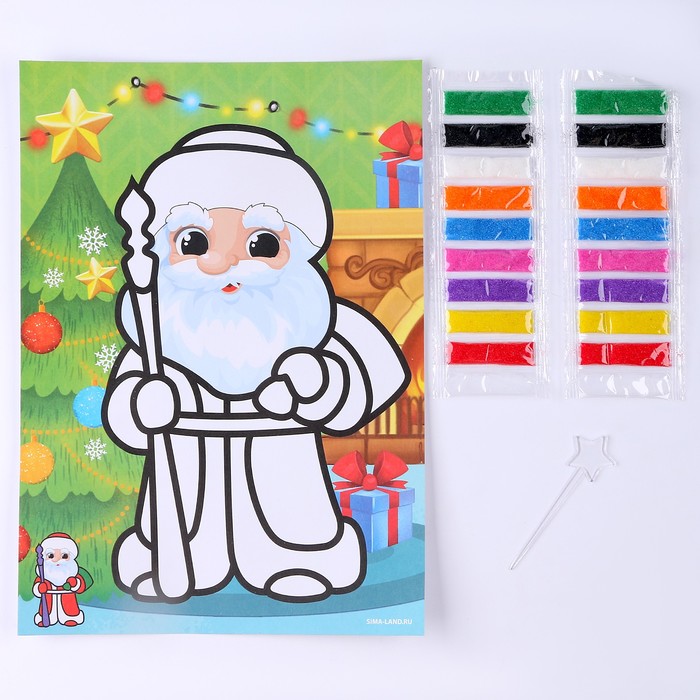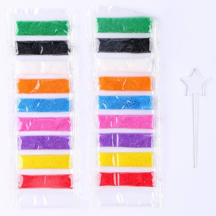 С этим волшебным набором ваш ребёнок сможет создать картину из цветного песка. Фреска станет отличным украшением детской комнаты и объектом гордости маленького художника.