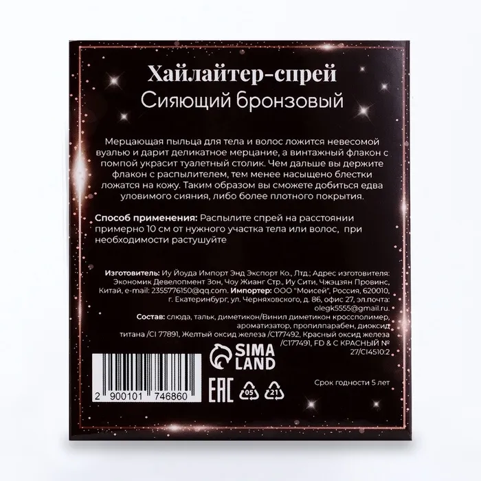 Создайте свой собственный уникальный образ, добавив этот сияющий глиттер-спрей, который подчеркнет вашу индивидуальность и придаст вам загадочное сияние.