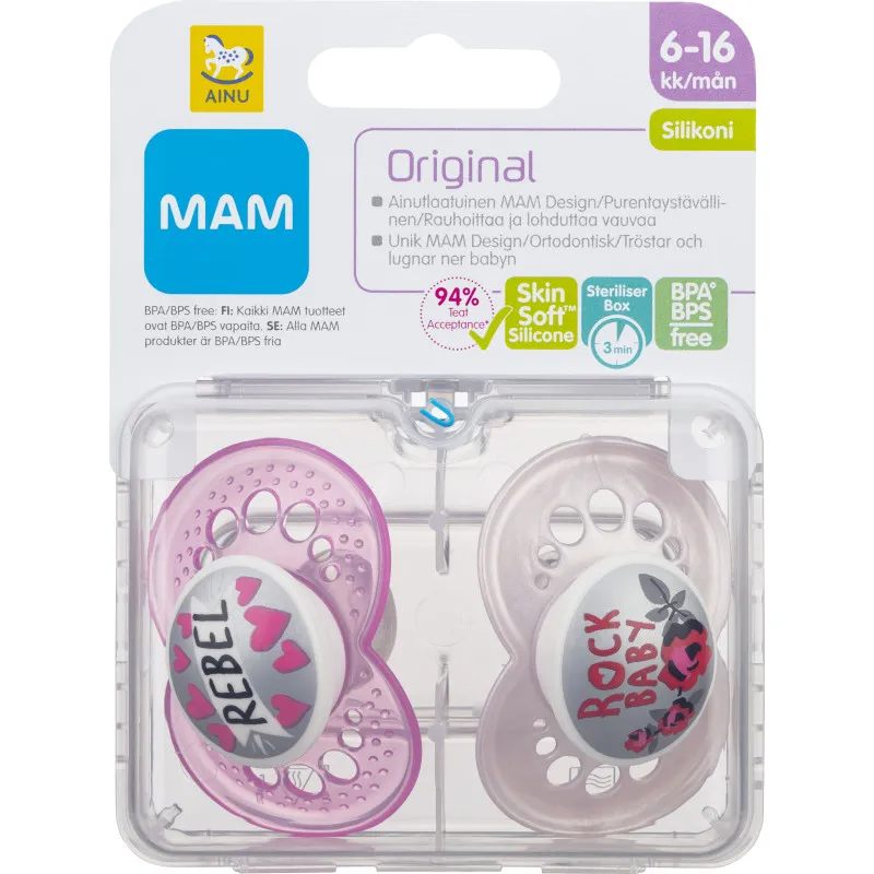 Ainu MAM Original силиконовая соска для детей от 6 до 16 месяцев имеет анатомическую симметричную форму, что позволяет ей всегда быть в правильном положении во рту. Благодаря специальным выступам и воздушным отверстиям на пластине, обеспечивается циркуляция воздуха, что предотвращает раздражение кожи. В комплекте две соски.