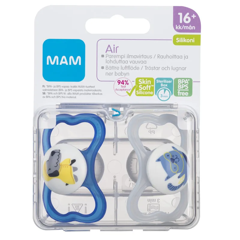 Ainu MAM Air - это пустышка с уникальным дизайном, где основная часть состоит из рамки. Благодаря этому кожа вокруг рта малыша не раздражается, даже если он сильно слюнявится. Пустышка всегда правильно располагается во рту ребенка и обеспечивает комфортное и безопасное использование. Легко чистится и может быть стерилизована в микроволновке в собственном футляре. Соска пустышки изготовлена из особо мягкого силикона, который не скользит и надежно удерживается во рту малыша.